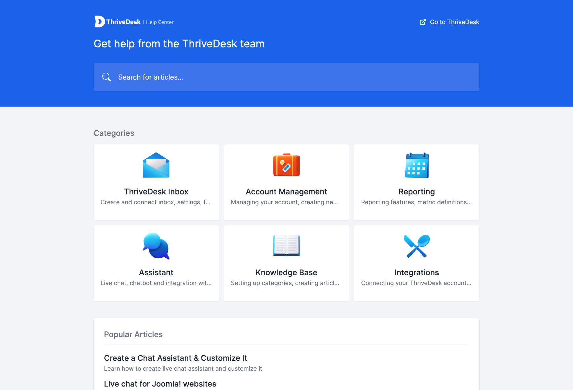 Aumente la productividad con el software ThriveDesk Knowledge Base. Acceda al instante a documentos de productos, preguntas frecuentes, guías de usuario y API. Encuentre lo que necesita sin esfuerzo, ahorrando tiempo y maximizando la eficacia.
